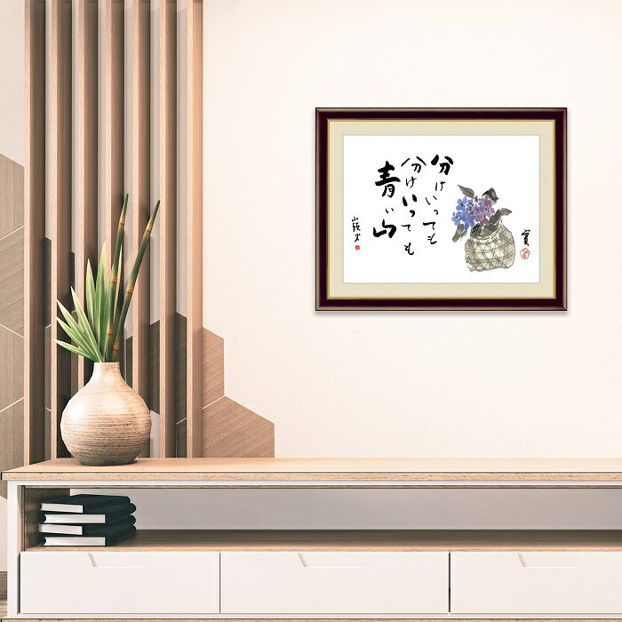 和室 インテリア 書 「紫陽花」 F6 <送料無料> 種田山頭火 額入りアート 俳句 アジサイ 花 夏 額付き 分け入っても分け入っても青い山 引っ越し 引越 事務所 店舗 移転 開店 開業 祝い ギフト プレゼント 外国人向け土産 52cm×42cm
